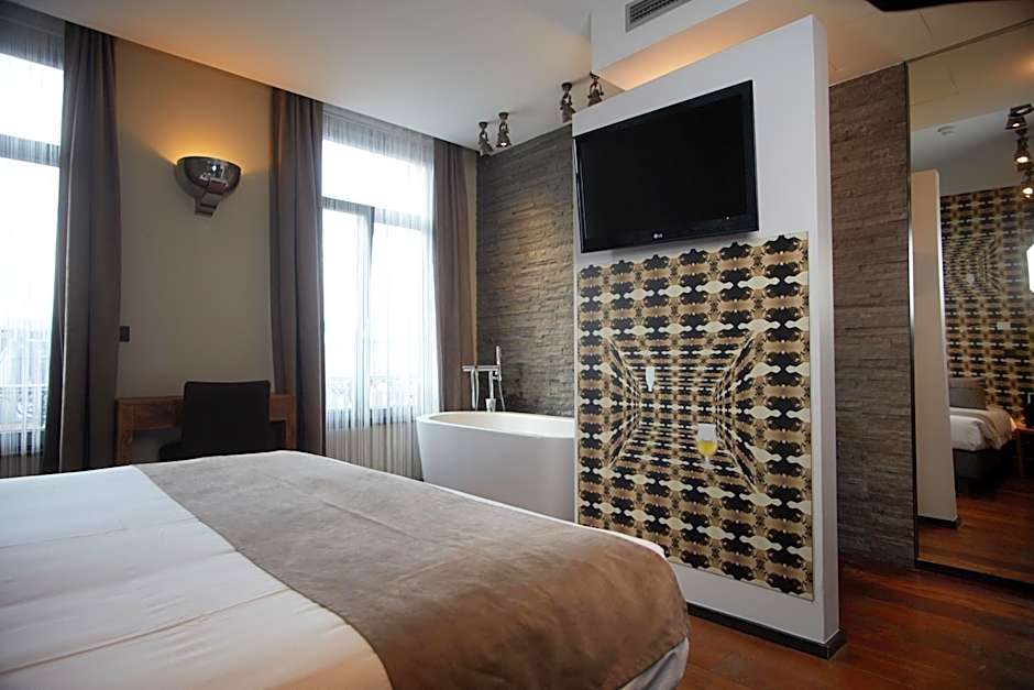 Room with a flat-screen TV, a desk, and a mini-bar. It also has a private bathroom.